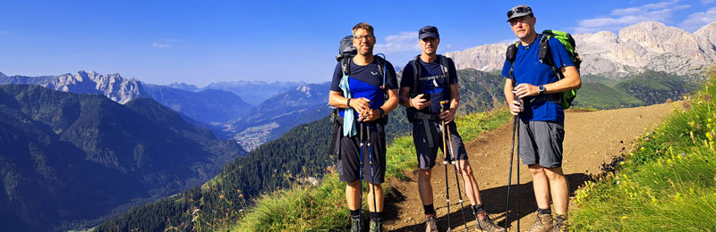 Von König Laurins Rosengarten und den grandios über uns aufragenden Vajolettürmen, wandern wir vorbei an steilen Felswänden und Pässen mit atemberaubender Fernsicht. Über die herrlichen Blumenwiesen der Seiseralm geht es zum Südtiroler Wahrzeichen, dem Schlern. Auf einem der schönsten Panoramawege, dem Friedrich August Weg unterhalb des Platt- und Langkofels, erreichen wir den mächtigen Sellastock, ein monumentales Bauwerk aus Dolomitgestein. Die letzte Etappe führt zuerst über das eindrucksvolle Val Lasties auf die Mondlandschaft des Pordoi und am nächsten Tag über den Bindelweg mit einer traumhaften Sicht auf die Königin der Dolomiten, die Marmolada zum Fedaiasee.