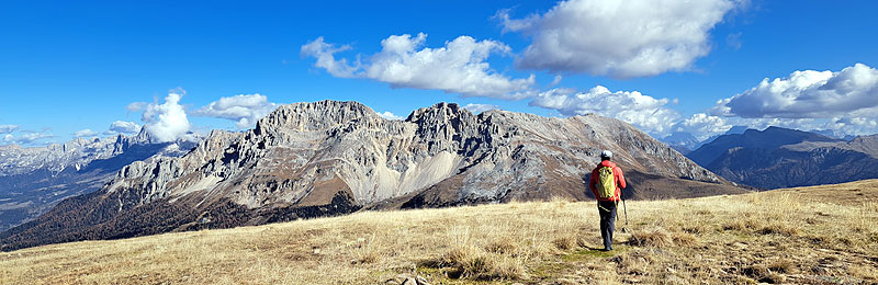 Auf unserer Durchquerung zwischen den beiden Dolomitengiganten Marmolada und Pale di San Martino erhebt sich der kleine Grat des Col Margherita mit den Gipfeln Juribrutto und Lusia und bietet einen herrlichen Blick auf die Costabellagruppe, Cima Uomo und Valfredda. Die Durchquerung führt dann weiter bergab zum Passo Valles, wo man die Gipfel Mulaz, Focobon, Vezzana und Cimon della Pala bewundern kann, symbolische Berge der Pale di San Martino.