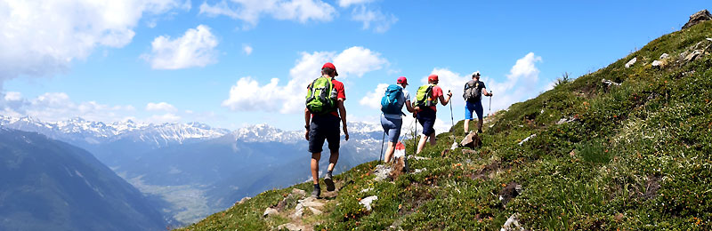 die auf den grünen Bergwiesen grasen. Nachmittags steigen wir mit eindrucksvollem Blick über das Pfelderertal über 1300 m ab zur Lazinser Alm und weiter bis nach Pfelders wo uns der Transferbus erwartet. Aufstieg: 1200 m, Abstieg: 1290 m, Gehzeit: ca. 7 - 8 Stunden, Km 21,5 |