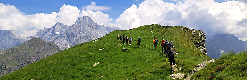 | Di. | Monte Altissimo 2079 m Wer den Gardasee noch nicht aus dieser Perspektive gesehen hat, hat etwas versäumt! Der Ausblick vom Monte Altissimo auf den blau glitzernden See, auf Brentadolomiten und Adamello ist bei klaren Sichtverhältnissen ein unvergessliches Erlebnis. Der steile Aufstieg erfolgt von San Giacomo Wald und Almwiesen, dann über eine breite Flanke vorbei am Rifugio Damiano Chiesa zum Gipfel. Abstieg über die Schutzhütte Graziani und die Bocca del Creer zurück nach San Giacomo. Aufstieg: 855 m – Gehzeit: ca. 4-5 Stunden |