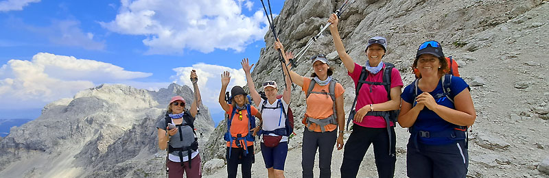 | 2.Tag | Vajolethütte - Schlernhaus Vorbei an der Ostseite der Vajolettürme zum Grasleiten Pass 2599 m und nach einem kurzen schottrigen Abstieg steigen wir vorbei an den Grasleitenspitzen steil zum Molignon Pass 2596 m auf und erreichen kurze Zeit später die Tierser Alpl Hütte (kurzer gesicherter Abstieg). Nach einer Pause geht es zuerst über einen aussichtsreichen Panoramaweg, dann über blühende Wiesen zum Schlernhaus 2457 m wo wir übernachten. Gehzeit: ca. 5 -6 Stunden, 950 m Aufstieg, 750 m Abstieg, Km 11,5 |