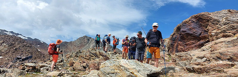 | Mi. | Zufallhütte - Gletscherlehrpfad Mit leichtem Tagesrucksack wandern wir die neun Etappen des Gletscherlehrpfades im Nationalpark Stilfserjoch, diese führen vorbei an hochalpinen Landschaften, Moränen, Gletscherseen. In neun Abschnitten des Themenweges erlebt man auf einer Wegstrecke von etwa zehn Kilometern, wie Gletscher und Schmelzwasser dieses Tal in der Cevedale-Ortlergruppe geformt haben. Der Weg führt von der Zufallhütte über den Wasserfallsteig auf ein Aussichtsplateau unterhalb des Hohenferners und weiter zur Martellerhütte mit herrlichem Ausblick auf den vor uns liegenden Cevedale. Gehzeit: ca. 4 - 5 Stunden - Höhenmeter: Aufstieg 650 m, Abstieg 650 m – Km 9,5 |