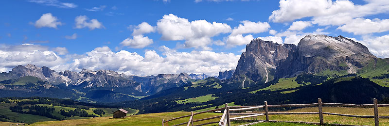 | 3. giorno | Rifugio Scilar - Monte Pez 2568 m - Alpe di Siusi - Passo Carezza La mattina presto saliamo senza bagaglio al Monte Pez, la meta più alta dello Scilar per ammirare il sorgere del sole. Dopo la colazione discesa per il Touristensteig sull'Alpe di Siusi, la piu grande d'Europa e discesa in funivia da Kompatsch a Siusi. Ritorno al Passo Carezza e partenza. Tempo di percorrenza: ca.3,5 - 4 ore, 250 m dislivello in salita, 800 m dislivello in discesa, Km 9 |